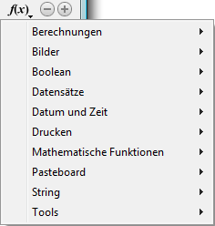 • zeigt eine Liste der 4D Funktionen, die standardmäßig für eine Suche nach Formel verfügbar sind. Über den Befehl SET ALLOWED METHODS können Sie Projektmethoden in diese Liste einfügen.
