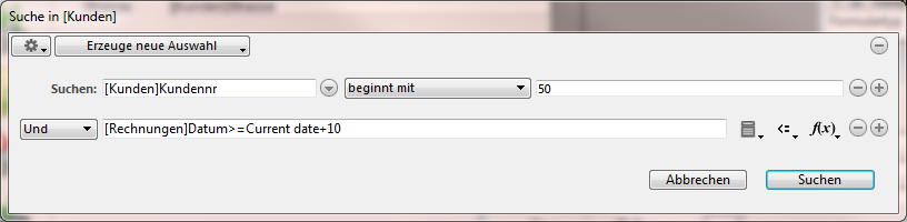 Über dieses Feature lassen sich Kriterien für Suche nach Formel mit den standardmäßigen Suchkriterien kombinieren: