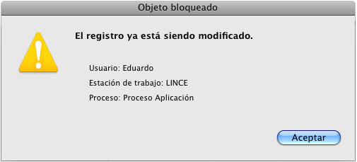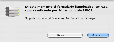 4D Server tiene un sistema de gestión integrado de bloqueo de datos que le advierte que el registro ya está en uso: