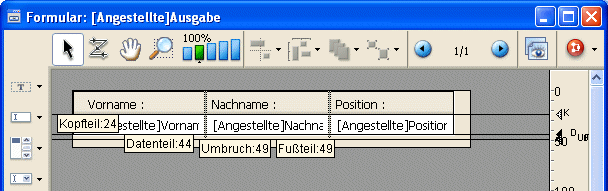 Hinweis: Wenn ein mehrseitiges Formular als Ausgabeformular verwendet wird (z.B. für den Druck), erscheint nur die erste Seite.