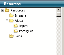 A lista de pastas mostra a hierarquia das pastas presentes na pasta Resources do banco de dados.