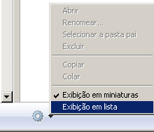 Do mesmo modo pode usar um menu contextual na lista de pastas. Os comandos desse menu são o mesmo que os do menu de ação.