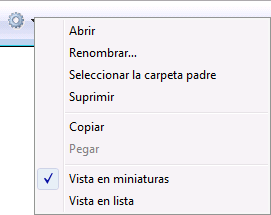 Igualmente puede utilizar un menú contextual en la lista de carpetas. Los comandos de este menú son lo mismo que los del menú de acción.