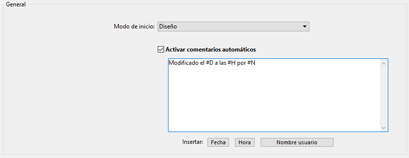 2. En la página General, seleccione la opción Activar los comentarios auto