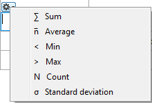これらの計算は、総計行や小計行をのセル内をダブルクリックしたときに表示されるメニュー内からも選択できます: