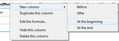 ヘッダーを右クリックしたときに現れるコンテキストメニューを使用すると、カラムを複製することもできます。カラムを複製 コマンドを選択すると、まったく同一のカラムがオリジナルのもののすぐ右側に追加されます。