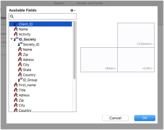 データセルにフィールドを割り当てるには、クイックレポートエディターのツールバーにある フィールド ボタンをクリックします: