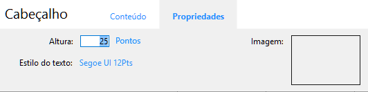 Entre a altura desejada para o cabeçalho ou rodapé na área Altura assim como as unidades (opcional). Como padrão, o tamanho do cabeçalho e rodapé está estabelecido como 25 pontos. Pode mudar este valor assim como a unidade usada. Clique na unidade para escolher os valores disponíveis: