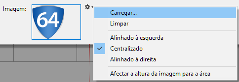 Normalmente, a imagem é colada no centro do cabeçalho ou rodapé. Entretanto, pode modificar esta localização (Alinhado esquerda, Centrado, ou Alinhado a direita) usando o menu local