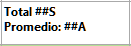 • ##S se reemplazará por suma en la línea de subtotal o total general.