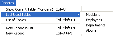 - Choose the List of Tables command in the Records menu.