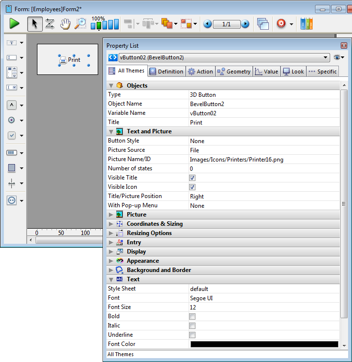 For more information about using 3D buttons in forms, refer to 3D Buttons, 3D Check Boxes and 3D Radio Buttons.