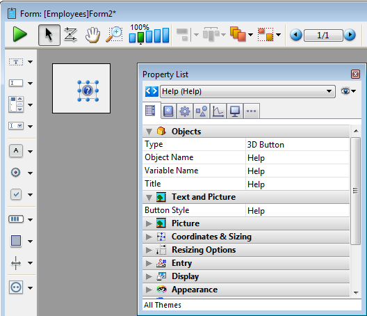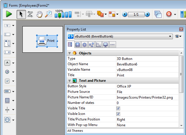 Adds a XP toolbar 3D button whose appearance has been preformatted. You can use the Property list to modify its properties.