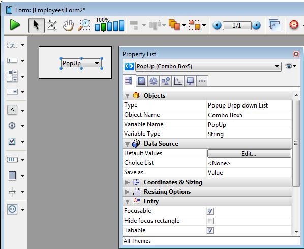 For more information about using pop-up menus in forms, refer to Pop-up Menus/Drop-down Lists.