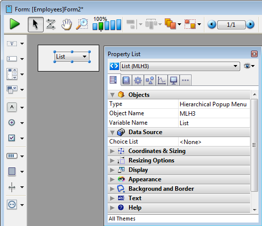 For more information about using hierarchical pop-up menus in forms, refer to Hierarchical Pop-up Menus and Hierarchical Lists.