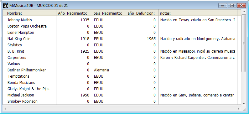 En el ejemplo anterior, el registro de cada uno de los empleados almacena el mismo tipo de datos. El tamaño de la base de datos crece de acuerdo al número de registros de empleados almacenados.