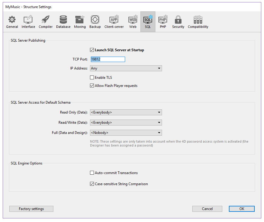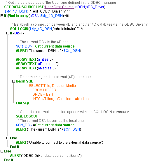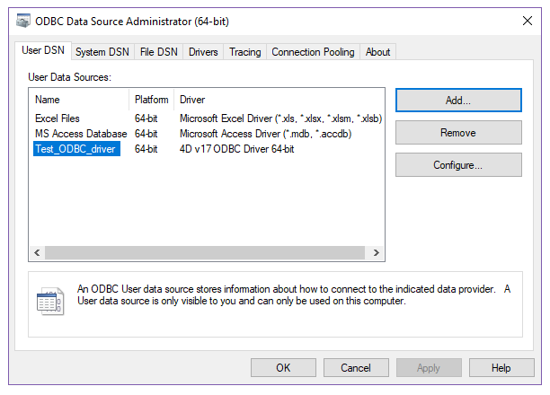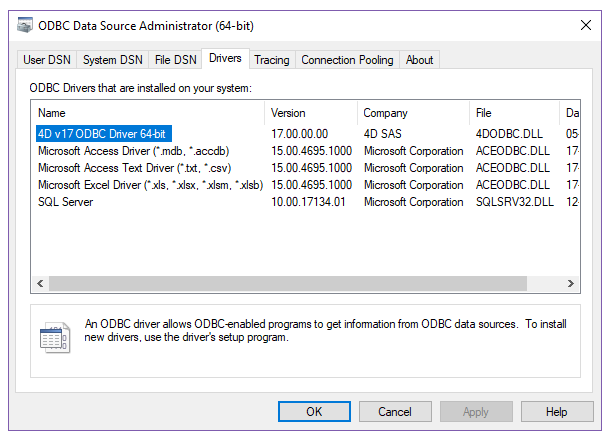 Conexión al motor SQL 4D vía el driver ODBC