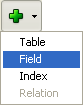 Right-click on a table, then select Append Field or Insert Field from the context menu. OR Double-click on one of the empty rows below the last field name of the table. OR Select a table then, in the add objects menu of the Structure editor tool bar, choose the Field option:
