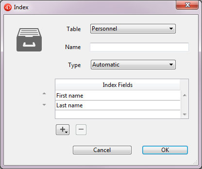 You can index fields of the Alpha, Text, Date, Time, Boolean, Integer, Long integer, Integer 64 bits, Real, Float, Picture and Object type. As you add and delete records, 4D automatically updates its index table. If you create an index for a field that already exists, 4D automatically indexes the existing data. You can specify as many indexed fields as you want. Indexes are also rebuilt during specific operations such as conversion of earlier databases or data compacting.