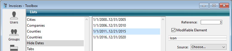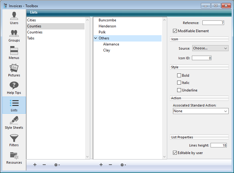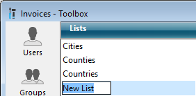 リストは、ツールボックスのリストエディターで作成します。また、リストエディターに戻って変更を行うことにより、いつでもリストを修正することができます。