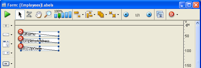 If the form size is set to "automatic" or relative to a specific object, its width is computed by adding the horizontal margin to the anchor's coordinates.Insert and set the objects making up each label.
