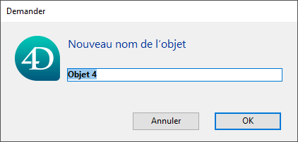 cliquer avec le bouton droit de la souris sur l’élément à renommer puis choisir la commande Renommer dans le menu contextuel. Une boîte de dialogue vous permet de renommer l’élément :