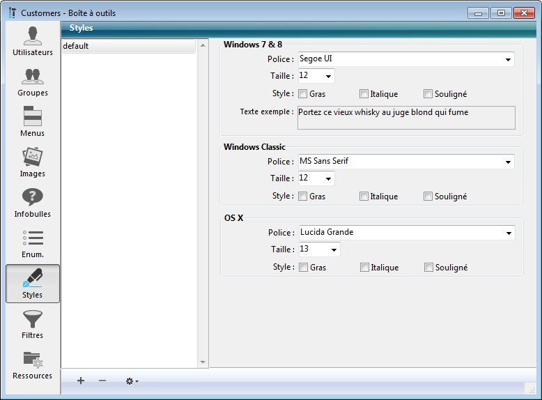 Par défaut, seule la feuille de style “default” est disponible. Vous pouvez modifier cette feuille de style.