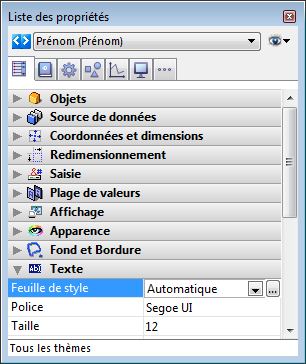Vous pouvez également ouvrir cette fenêtre depuis l’éditeur de formulaires, en cliquant sur le bouton [...] situé à côté de la liste de sélection des feuilles de style dans la Liste des propriétés :