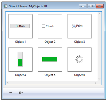 4D permite criar e utilizar bibliotecas de objetos. Uma biblioteca de objetos é um arquivo externo criado por 4D que permite armazenar todo tipo de objetos (botões, textos, imagens, listas hierárquicas, etc). É possível usar esses objetos em diferentes formulários. Os objetos são guardados com todas as suas propriedades, incluindo seus métodos de objeto.