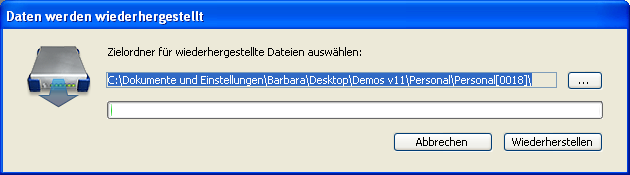 Wählen Sie die gewünschte Datei und klicken auf die Schaltfläche Öffnen. Auf dem Bildschirm erscheint folgendes Dialogfenster. Hier können Sie den Zielordner angeben, in dem die Dateien wiederhergestellt werden: