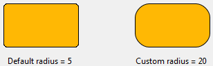 Por padrão, o valor do rádio de retângulos arredondados é de 5 píxels. Pode mudar esta propriedade para desenhar retângulos arredondados com formas personalizadas: