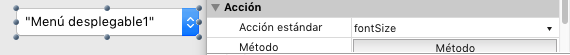 2. Asigne la acción estándar "fontSize" al menú emergente/objeto de lista desplegable al nivel del formulario: