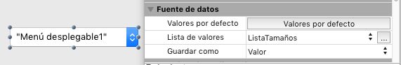 3. Asigne "SizeList" como lista de selección para el menú emergente/objeto de lista desplegable: