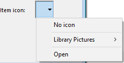 Para borrar un icono, seleccione Sin icono en el menú del icono del elemento.