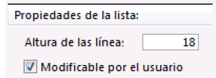 2. Marque la opción Modificable por el usuario en el área “Propiedades de la lista”: