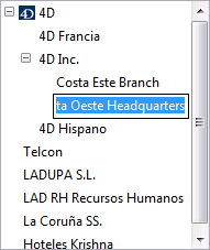 Una lista puede también utilizarse para especificar los elementos en una lista jerárquica. Cuando la lista se utiliza de esta forma, usted puede controlar la modificación por parte del usuario de cada elemento en la lista. Si un elemento de la lista es editable, el usuario puede mantener presionada la tecla Alt bajo Windows o la tecla Opción bajo Mac OS y hacer clic en el elemento (o simplemente hacer clic dos veces) para modificarlo. Un elemento modificable en una lista jerárquica se muestra en la siguiente imagen.