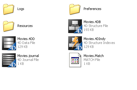 4D crea por defecto varios archivos y carpetas para cada aplicación. Los archivos adicionales también se utilizan cuando la base ha sido convertida de una versión anterior.
