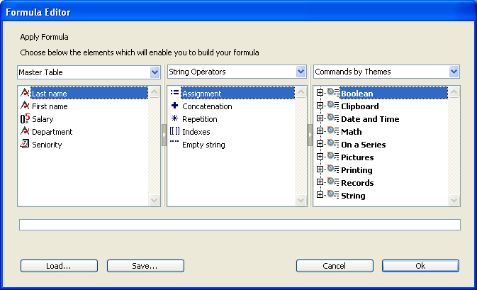| := Assignment | H1:=H2 | Assigns the value H2 to H1 |