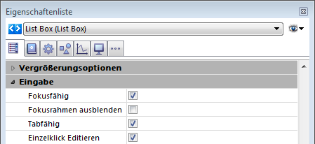 Diese Gruppe enthält Standardeigenschaften zur Dateneingabe in der Listbox.