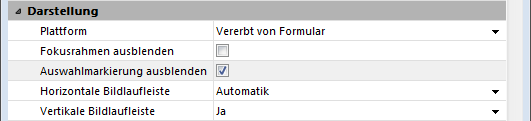 Diese Gruppe enthält die Option Auswahlmarkierung ausblenden, um die markierte Auswahl in Listboxen zu deaktivieren.