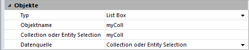 Für Listboxen vom Typ Collection oder Entity-Selection gibt es drei Eigenschaften.