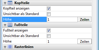 Hinweis: Die Zeilenhöhe für Kopf- und Fußteile wird separat im Thema "Kopfteile" und "Fußteile" definiert.