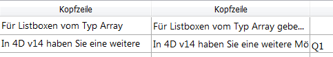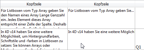 Hinweis: In Projekten können Sie die horizontale und vertikale Einrückung für eine Listbox, eine Spalte, ein Kopfteil oder ein Fußteil über die Eigenschaftsliste festlegen (siehe developer.4d.com). Beachten Sie, dass Sie den Befehl LISTBOX SET PROPERTY auch zur Runtime verwenden können.
