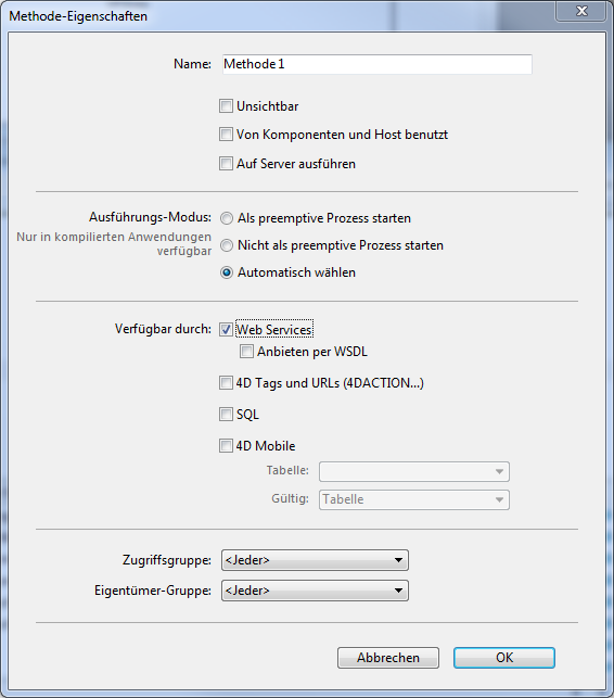 - 4D Web Service Methoden können in Preemptive 4D Prozesse laufen (nur kompilierte Anwendungen in 64-bit).