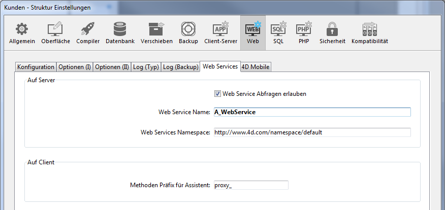 - Um ein 4D Web Service im RPC Modus zu veröffentlichen, verwenden Sie folgende URL für das WSDL: