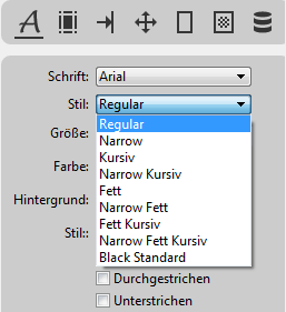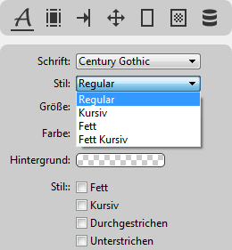 Die unter Stil verfügbaren Einträge können je nach gewählter Schrift variieren:
