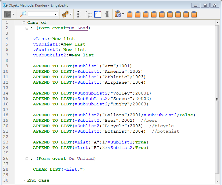 Die Liste im Formular mit dem vorgegebenen Code sieht so aus: