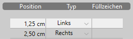 Sie können einzelne Tab Stopps manuell ändern. Geben Sie dazu einen neuen Wert unter Position ein und wählen bei Bedarf im DropDown-Menü einen bestimmten Typ: