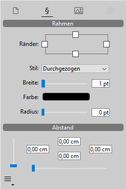Dieses Panel verwaltet Rahmen und Füllen im 4D Write Pro Bereich.