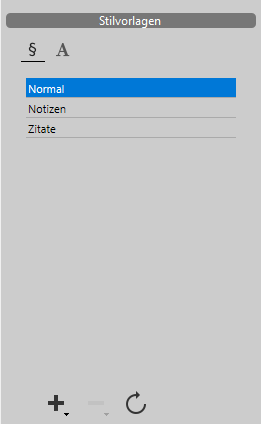 Dieses Panel verwaltet die standardmäßigen Schriftstile und Eigenschaften für Text im 4D Write Pro Bereich.